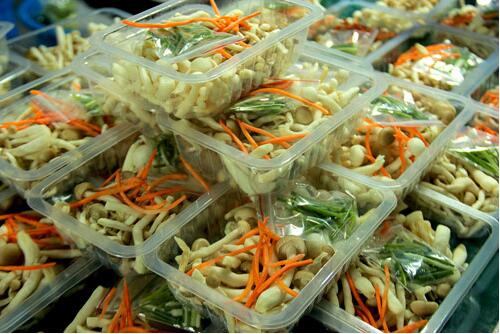 的基礎上,充氮氣或混合氣體進行包裝)封口、(上膜和托盤封在一起)沖切,最后排氣,降膜,